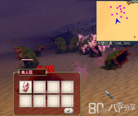 他在一家南北杂货那儿抱怨没人卖他好东西,他需要的是:食人花矿石,要到赤壁沙漠[346 384]去打食人花才可以得到,交给他之后可以得到戒指。